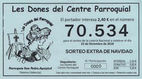 Ya está a la venta la lotería y rifa de "Les Dones del Centre", a total beneficio, como cada año, de Cáritas Parroquial. Este año con una novedad: se ha dividido lotería y rifa, que se compran por separado: