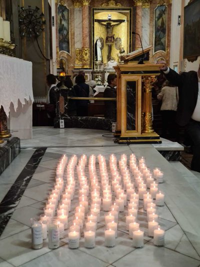 Un detalle importante es que no podemos recibir cirios que no estén homologados con las normas europeas de seguridad, porque se encenderán en el templo sin que necesariamente haya alguien en el edificio, así que tienen que ser seguros. Por eso sólo aceptamos los cirios que ofrecemos en sacristía.