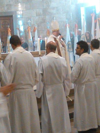 La Eucaristía, que dio comienzo a las 22,30, fue presidida por el Obispo Auxiliar D. Esteban Escudero, concelebrada por más de veinte sacerdotes y cantada por el coro de los seminaristas.