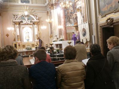 La oración fue dirigida por nuestro párroco D. Juan, y seguida por los miembros de la Adoración Nocturna y gran número de feligreses. Tras la reserva de Su Divina Majestad finalizó el acto con el canto de la Salve Regina.