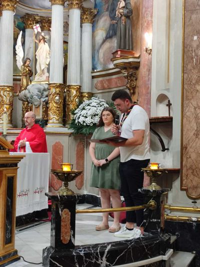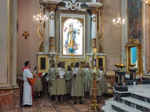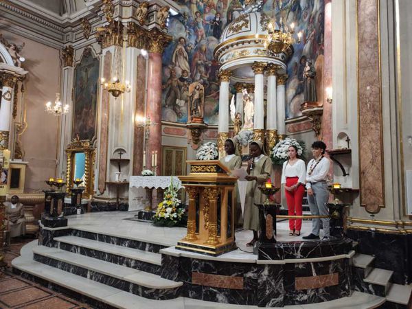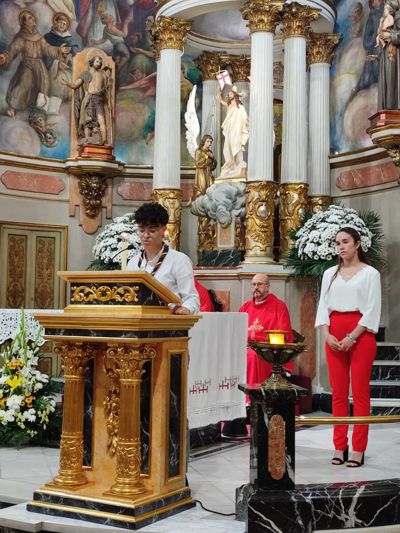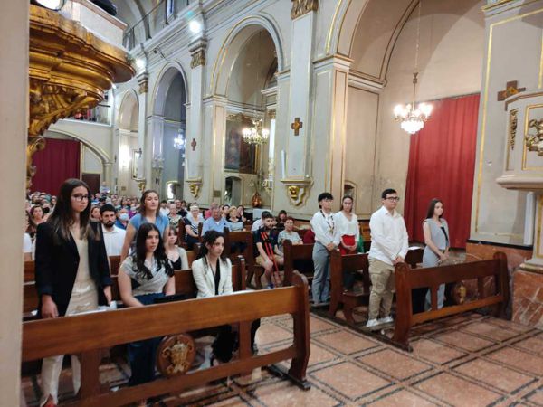 La iglesia estaba a tope con tantos confirmandos y sus familiares, y la celebración contó con el bello canto de las hermanas del colegio, preparadas por D. Ever. Presidió la ceremonia el vicario episcopal D. Jorge García Montagut.