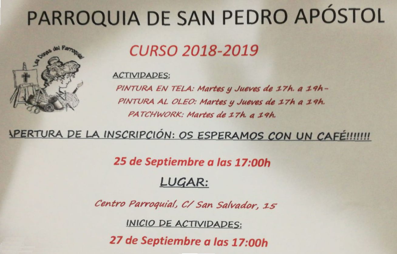 que realizaremos el martes 24 de septiembre a las 17 horas en el Centro Parroquial