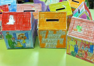 Entre otras actividades, los niños arman y colorean las "huchas misioneras" de las Obras Misionales Pontificias, y allí dejan, semana tras semana, centimitos que los ayudan a darse cuenta de que son parte de una Iglesia grande y misionera.