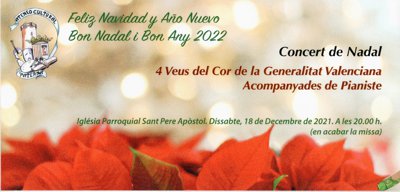 El sábado y domingo del 18 y 19 de diciembre se vivieron intensos momentos de arte en nuestro templo, con los dos encuentros musicales ya clásicos del fin de año: el organizado por el Ateneo Cultural de Paterna y el encuentro de Coros.